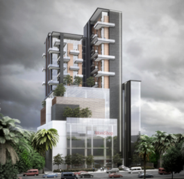 Monishop This is a commercial complex building jointly invested by Monishop and XSML companies in the Democratic Republic of Congo, integrating various industries such as hotels, offices, large supermarkets, banks, shopping malls, catering, and pharmacies. 2-story basement+13 story business building and hotel, with a total construction area of 15006 square meters and a total height of 63.5 meters.